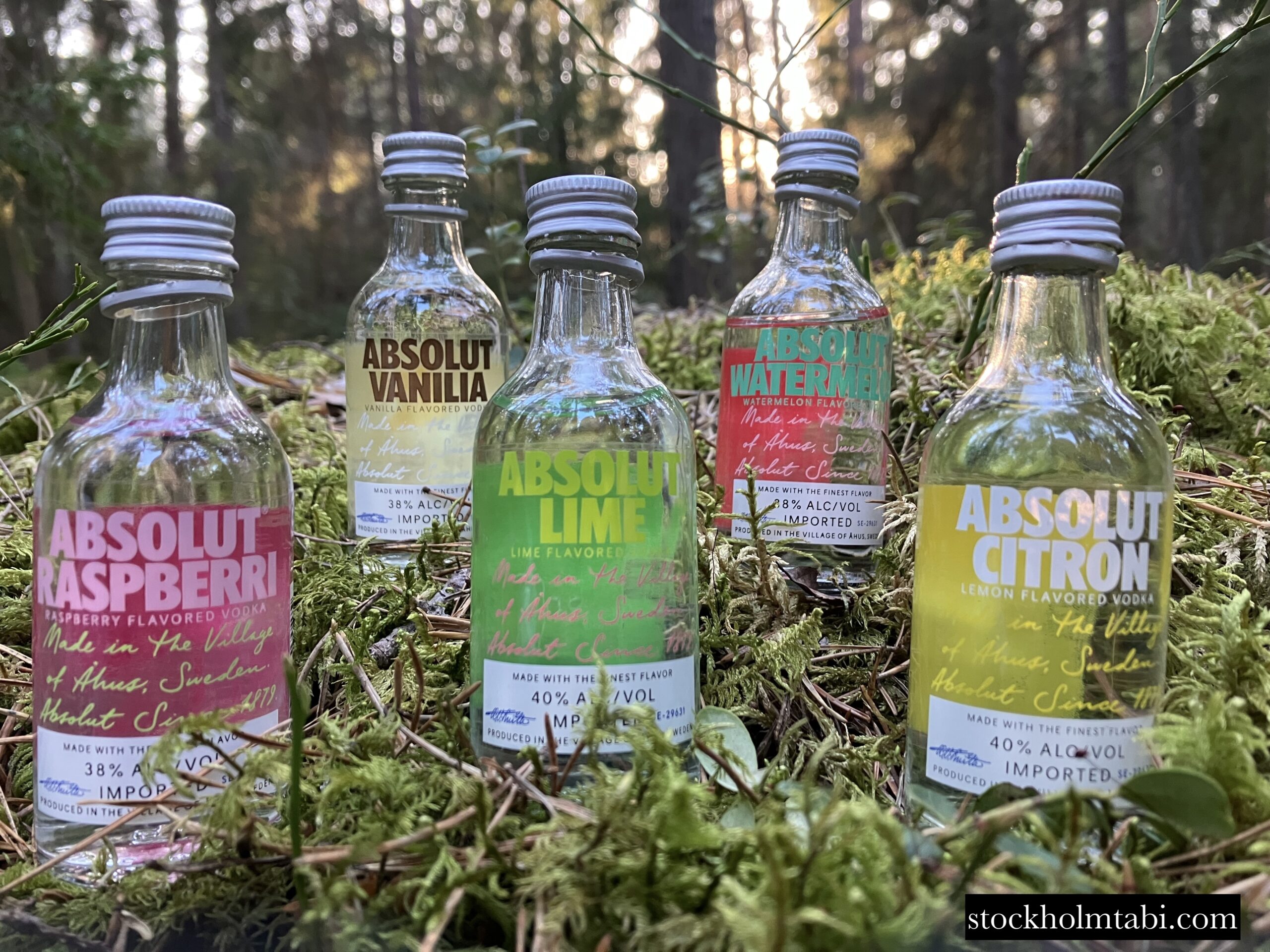 5本並んだアブソルートウォッカの小瓶